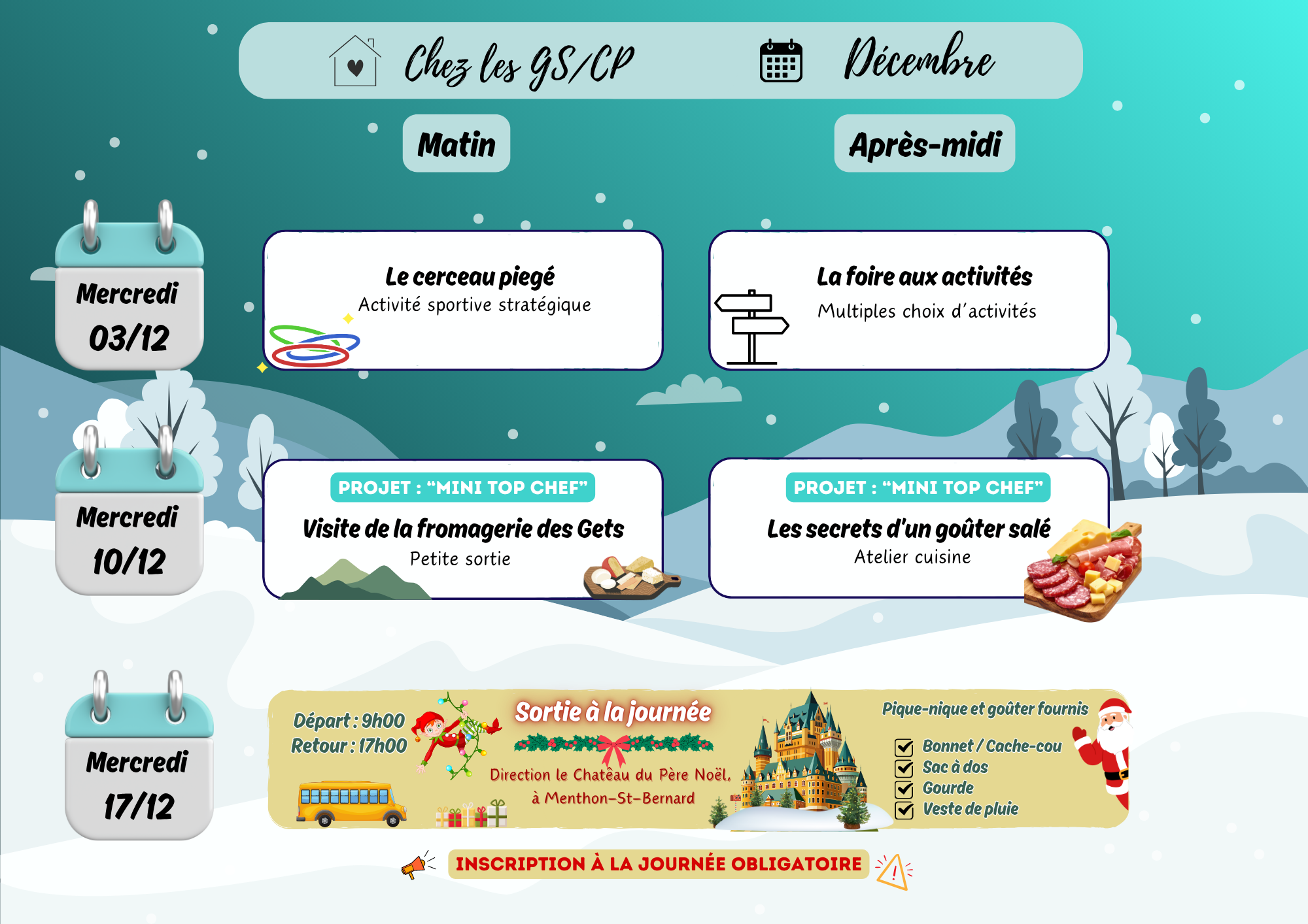 Pendant ce deuxième cycle, place à la magie de l’hiver et à l’effervescence des fêtes de Noël ❄️