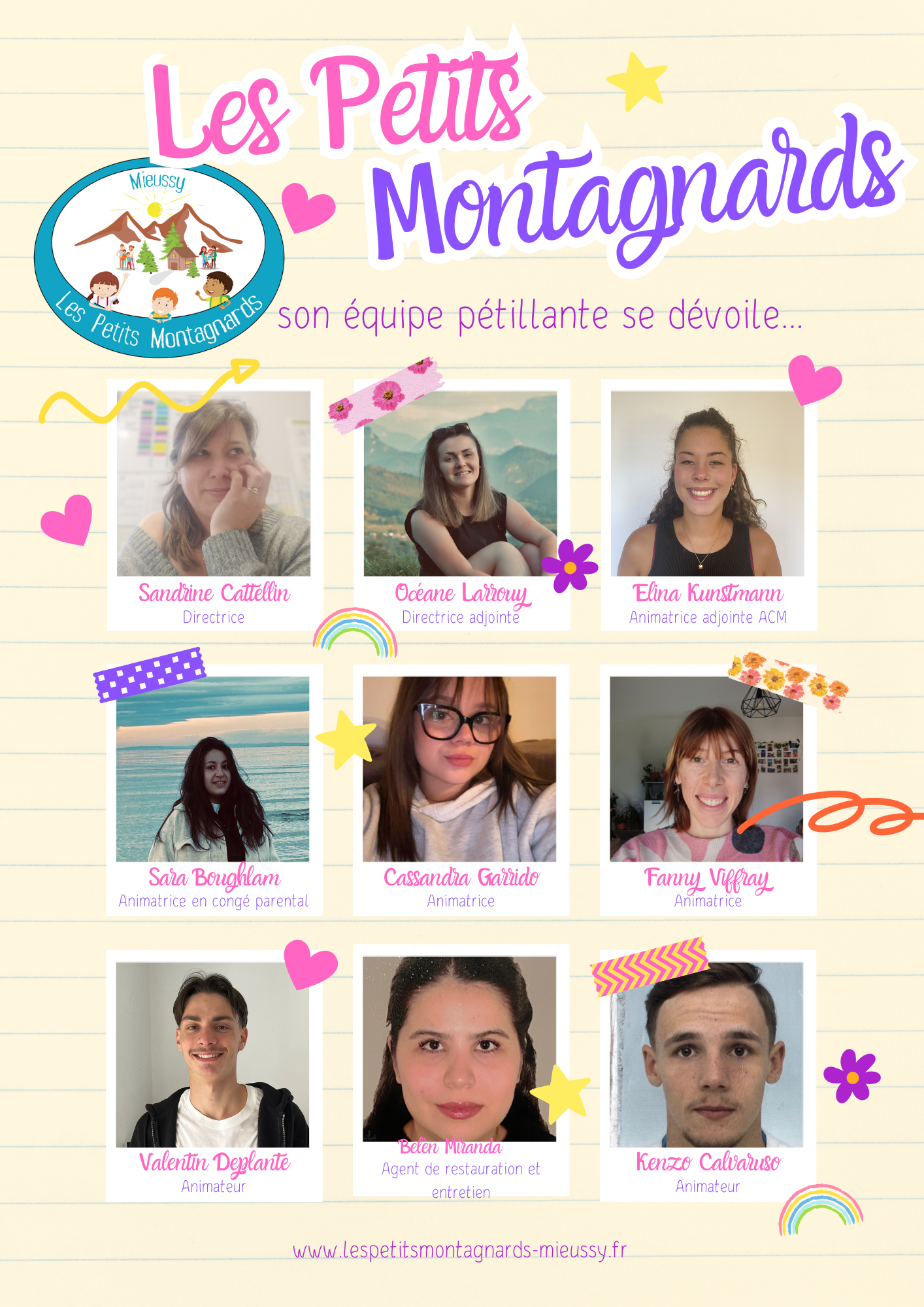 L’équipe est composée d’une directrice (de l’association), d’une directrice adjointe (en charge des accueils de loisirs et périscolaire),de 4 à 6 animateurs et stagiaires selon les dispositifs et les périodes et d’un agent de restauration et d’entretien.