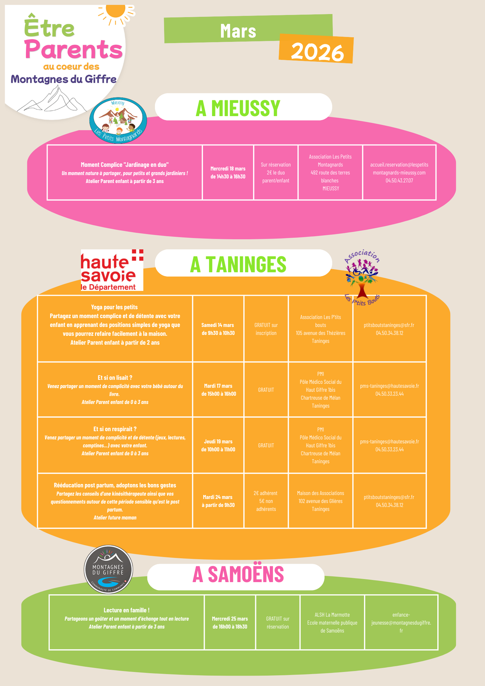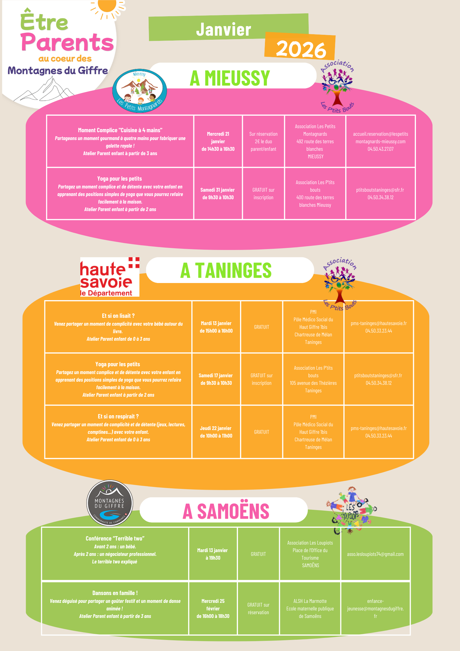 La majorité de ces actions est financée par le Département de la Haute-Savoie, le REAAP 74 et la CAF, permettant ainsi de proposer des activités gratuites ou à faible coût pour les familles.