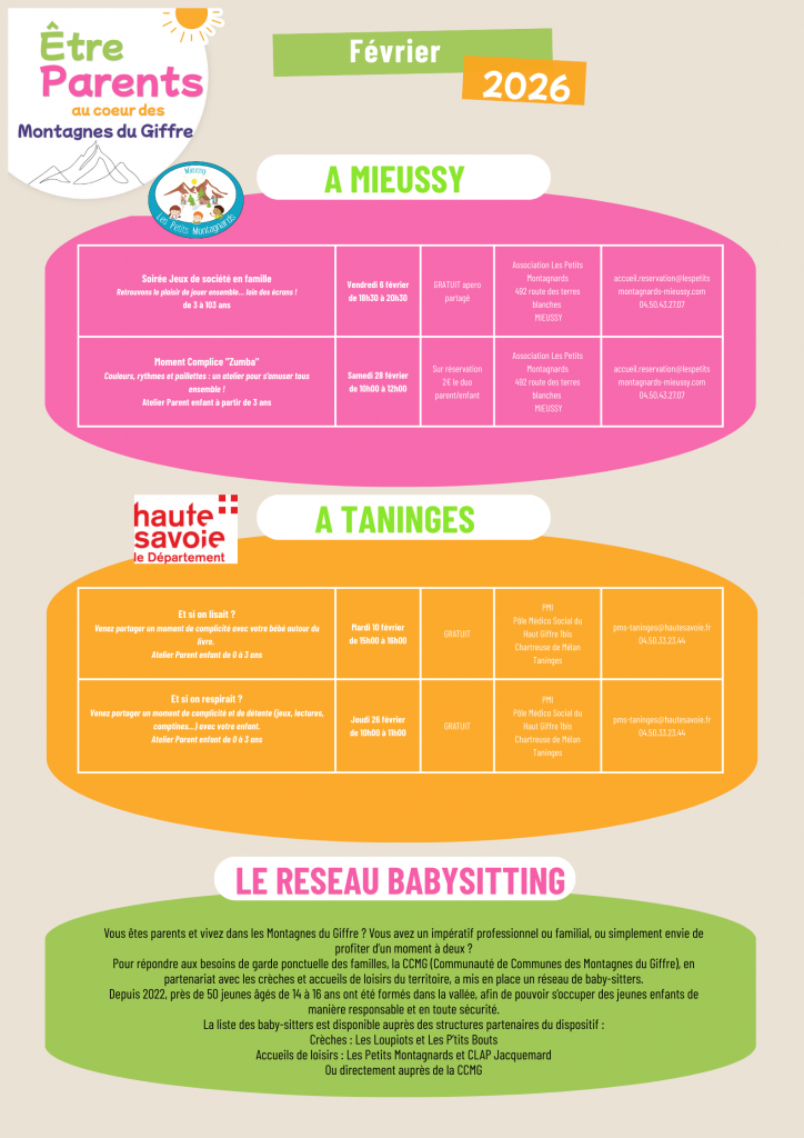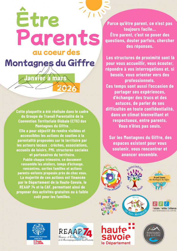 Cette plaquette a été réalisée dans le cadre du Groupe de Travail Parentalité de la Convention Territoriale Globale (CTG) des Montagnes du Giffre.