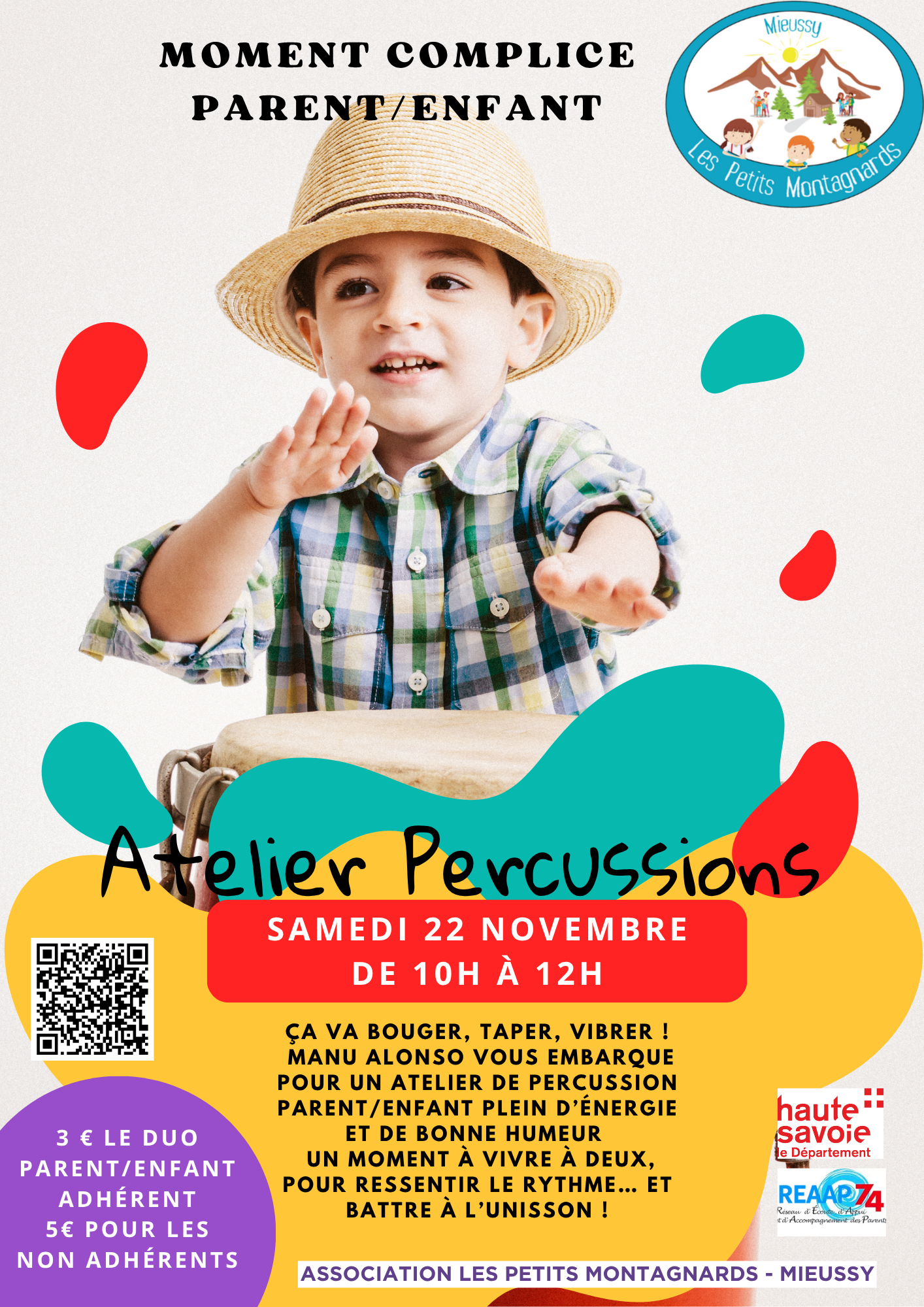 Vibrez en famille !Participez à notre atelier parent/enfant de percussion animé par Manu Alonso, musicien passionné et plein d’énergie !Un