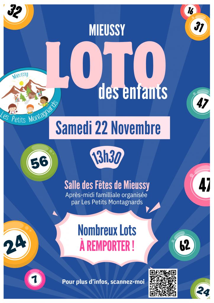 LE LOTO DES ENFANTS fait son grand retour le 22 novembre à 13h30 à la Salle des Fêtes de MIEUSSY.